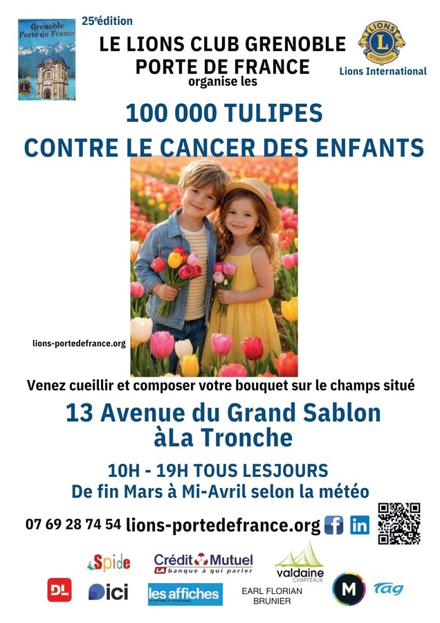 Vous pourrez cueillir et composer votre bouquet librement. Pour un don de 10 euros, 15 tulipes vous seront remises. Les bénéfices de cette belle opération seront remis au service oncologie-pédiatrie du CHU Grenoble Alpes.