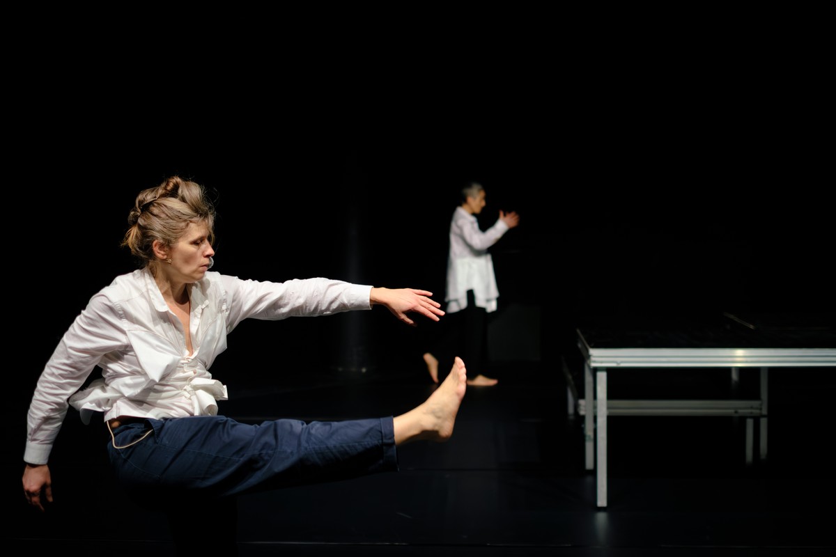 Création 2026 - SUPERPOUVOIR est une conversation dansée et improvisée où Julie Nioche & Isabelle Ginot exposent 25 ans de dispute en mots et en gestes, faite d’incertitudes, de questions au travail.