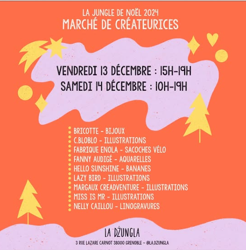 La Jungle de Noël, c'est un marché de créateur.rices à la Dzungla, atelier d'artistes à Grenoble.