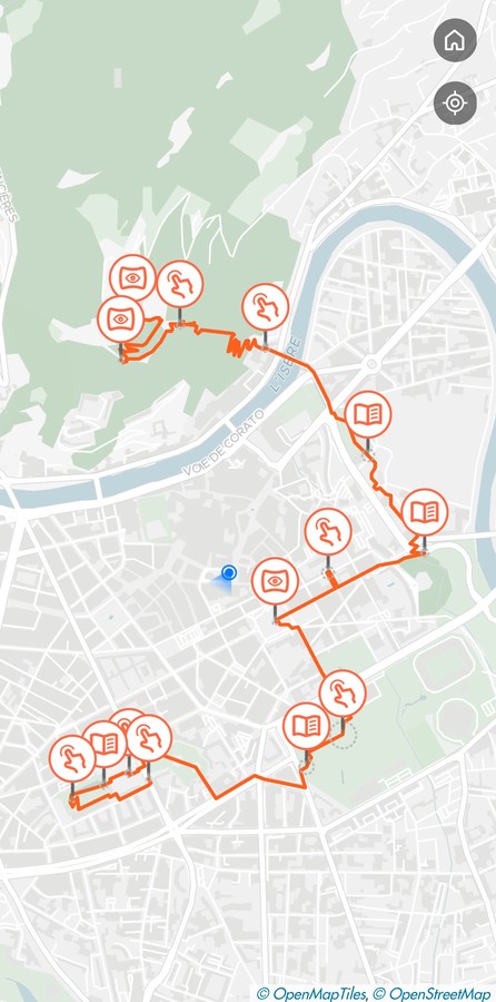 Accéder au point de départ soit en montant à la Bastille à pied (45 minutes) soit en prenant le téléphérique (payant).