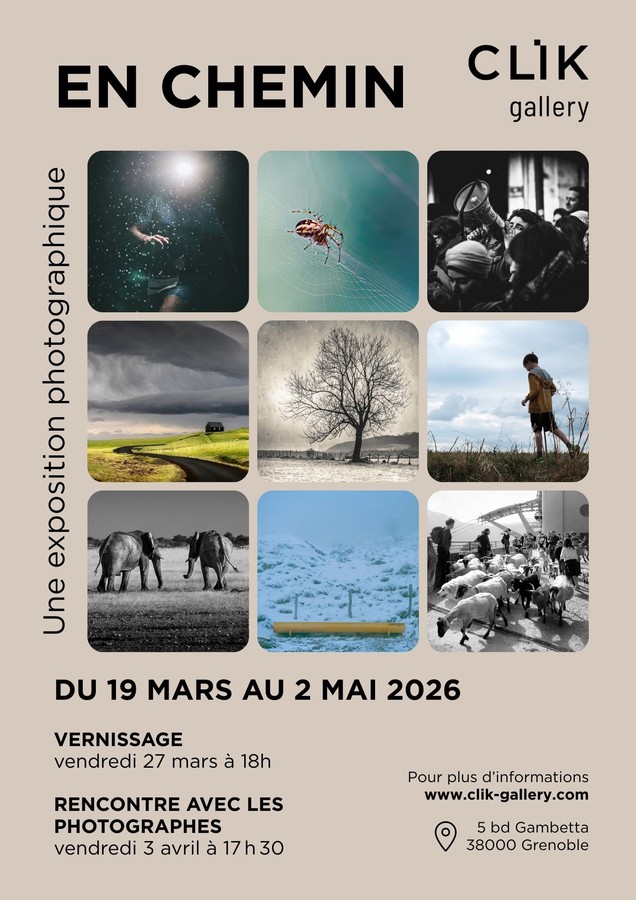 La CLIK Gallery a le plaisir de présenter En Chemin…, une exposition collective en deux temps qui invite le public à découvrir des regards multiples sur le thème du parcours — au sens propre comme au sens figuré.