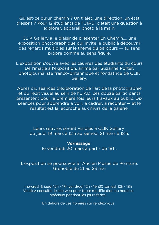L'UIAD et CLIK Gallery ont le plaisir de présenter "En Chemin...", une