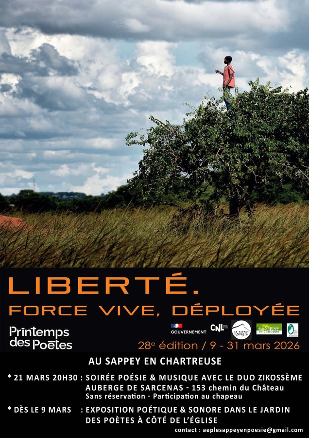 Le Printemps des Poètes va à nouveau déplier ses ailes dans le village du Sappey en Chartreuse sur le thème de « La Liberté , Force Vive , Déployée ». La poésie vous surprendra dans le Jardin des Poètes mais s'évadera aussi dans le centre-bourg.