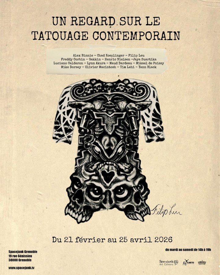 Venez découvrir cette exposition collective, pour regarder le tatouage autrement. Ici, le travail ne se limite pas à la peau : vous y verrez des œuvres sur des bustes, des dessins ou des peaux d'entraînement.