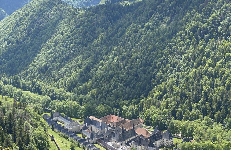 Pendant quelques kilomètres, vous resterez au cœur de la forêt de la Grande Chartreuse sur les flancs du Grand Som. Deux belvédères aménagés sur votre droite offrent une vue imprenable sur le Monastère de la Grande Chartreuse, niché dans ce vallon unique.