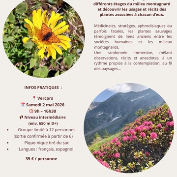 Accompagnatrice en montagne, ethnologue, médiatrice scientifique et sociale, je vous accompagne avec plaisir à la découverte des paysages de montagne, des hauts sommets aux petits paradis perdus, en partageant anecdotes pittoresques et belles découvertes.
