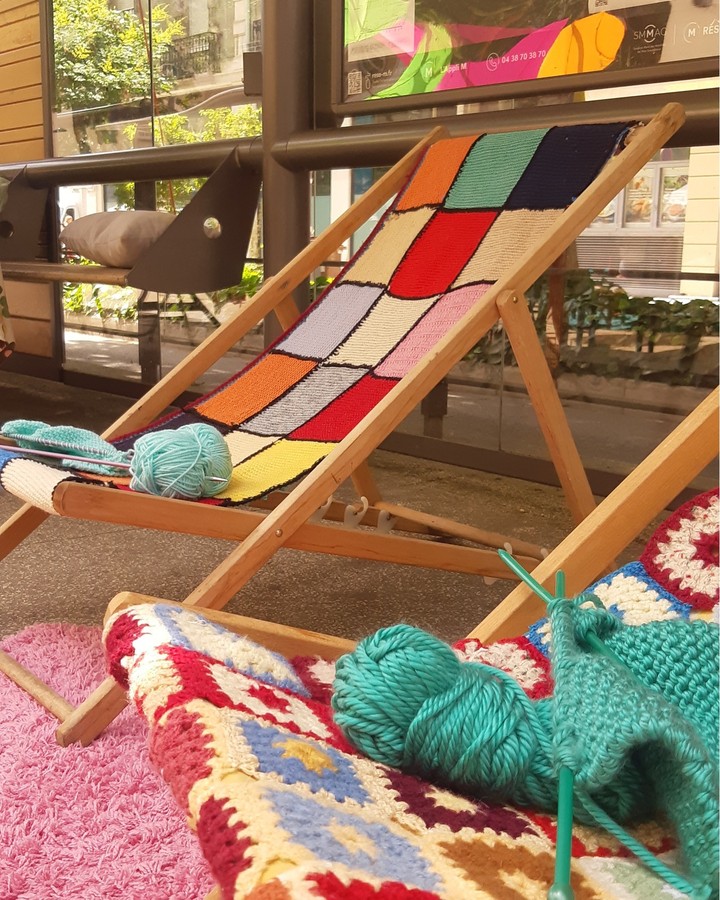 Inspirée par le yarn bombing, - une forme d’art urbain qui consiste à recouvrir des objets ou des espaces publics de tricot ou de crochet coloré -, Maud Bonnet métamorphose le musée et le quartier grâce à la participation des habitants, des membres des associations et des structures du quartier.