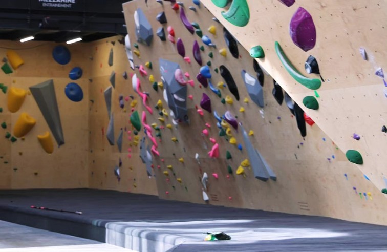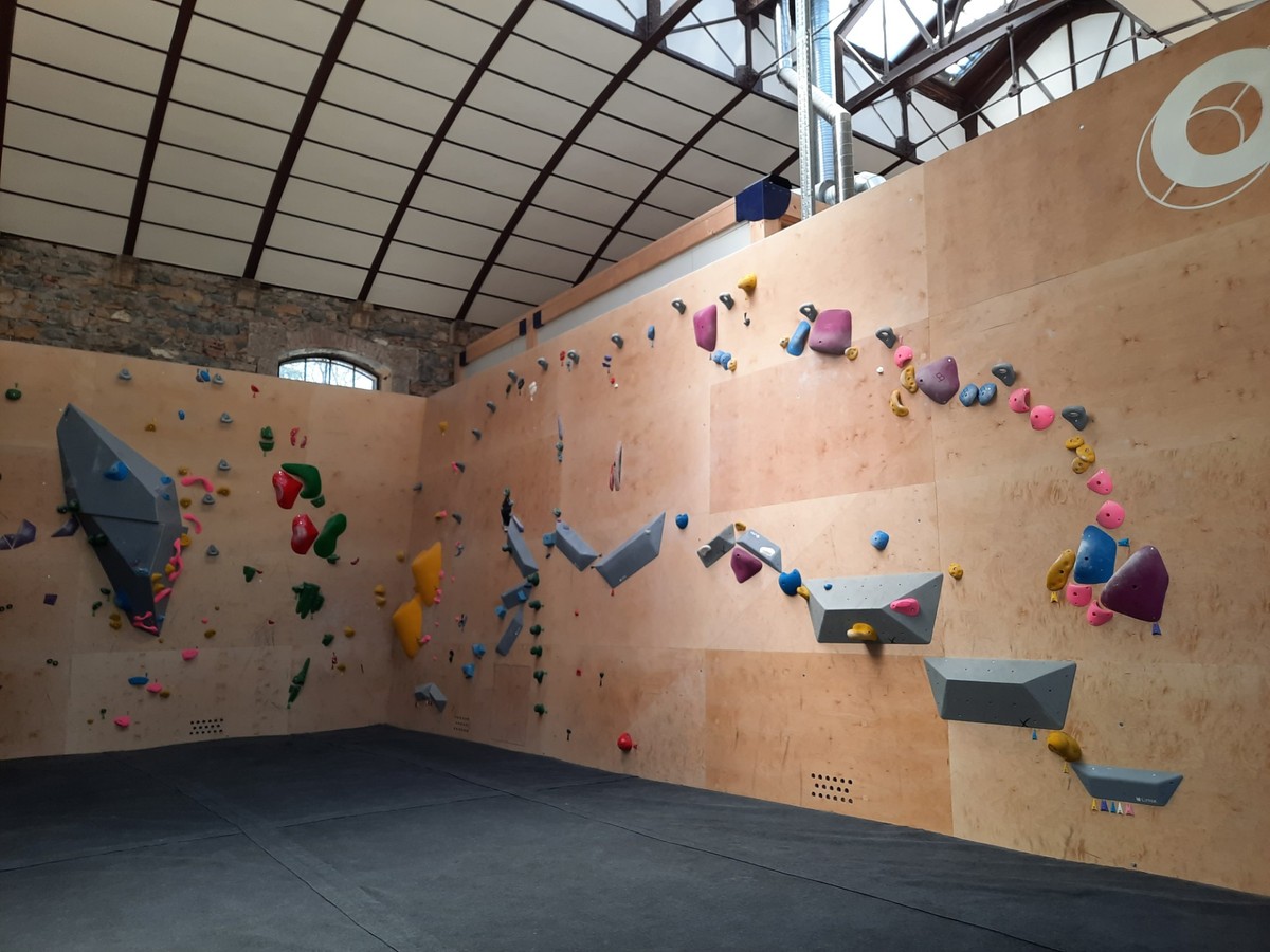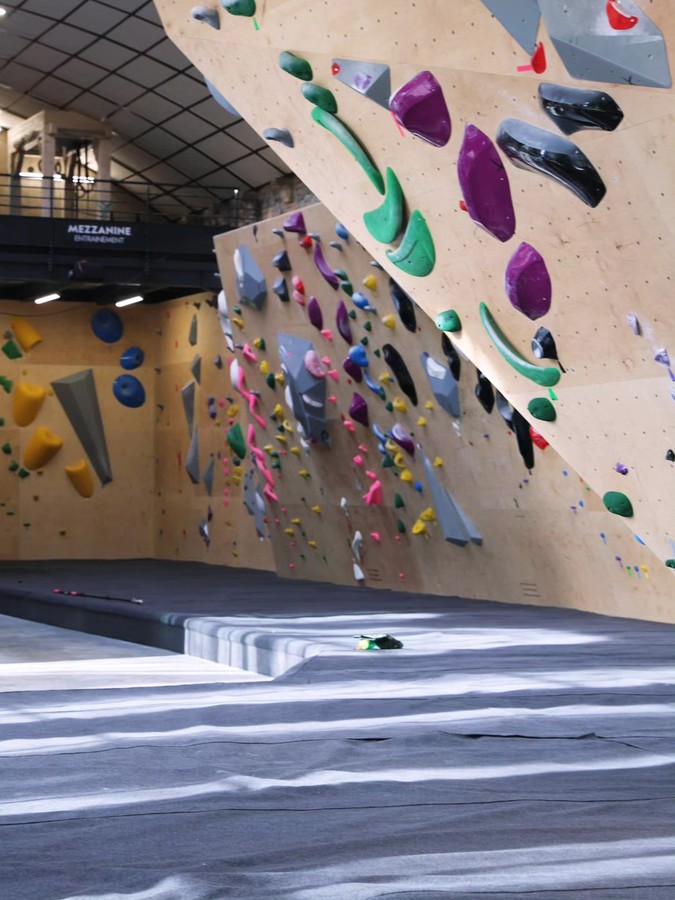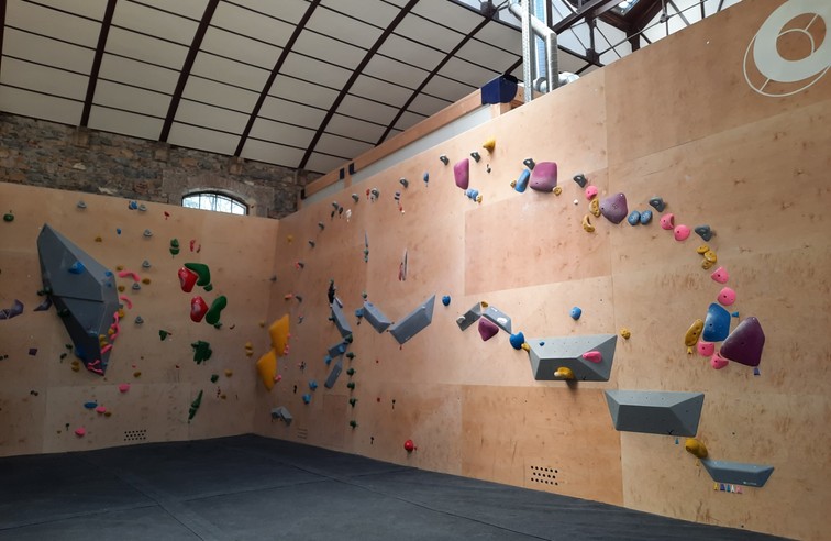 La salle d'escalade se compose de 3 espaces, dont deux mezzanines (spraywall).