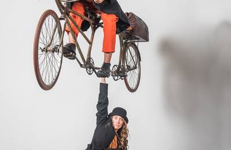 bicyclette volante faite de bois, de fer et de poussière. Ce duo de funambules