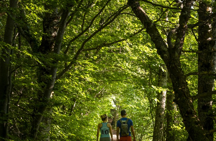 Prendre alors le GR9 au niveau de la Chapelle, à 765m d'altitude. Le sommet du Mont Rachais est alors indiqué à 3,1km pour 1h15 de marche. La balade commence alors par une large piste jusqu'à la prochaine intersection : la bergerie situé à 900m d'altitude. Prendre à droite en direction du Mont Rachais par les crêtes. La confortable piste continue et monte de façon modérée jusqu’au lieu dit « Les Granges » à 1010m d'altitude.