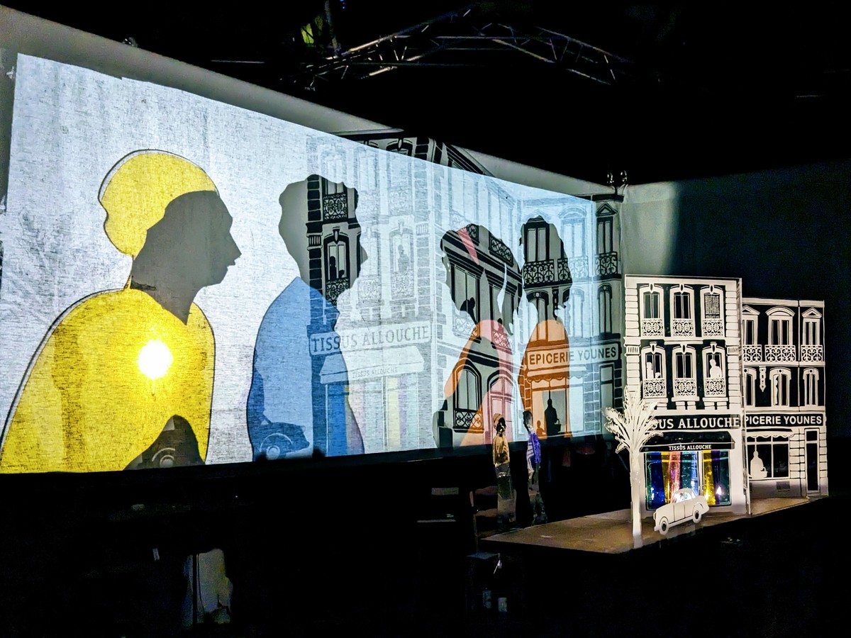 Au début des années 1950, Babeth et Simone, deux sœurs juives inséparables, grandissent à Alger au rythme des repas de shabbat et d’après-midis à la plage. Mais à l’aube de l’indépendance, leurs chemins se séparent. Quand l’une perpétue l’héritage familial, l’autre s’engage pour l’indépendance. Bientôt, l’exil s’impose, les arrachant à cette terre qui les a façonnées. Fresque éblouissante grâce au travail sur les ombres et la lumière, Min El Djazaïr vibre au son de la musique judéo-arabe créé par la musicienne Jina Di Najma lors d’une résidence auxDétours de Babel en 2023. L’univers sonore et la voix donnent vie à une scénographie envoûtante. Entre improvisation et composition, le spectacle nous entraîne sur les chemins de la mémoire et de l’exil, avec poésie et émotion.