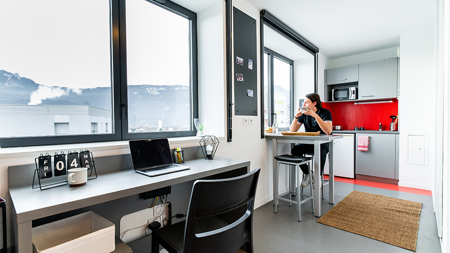 Cette nouvelle résidence étudiante à Grenoble est le centre d’un projet ambitieux et constitue le must du logement étudiant. Elle dispose d'appartements meublés et équipés prêt à l'emploi.