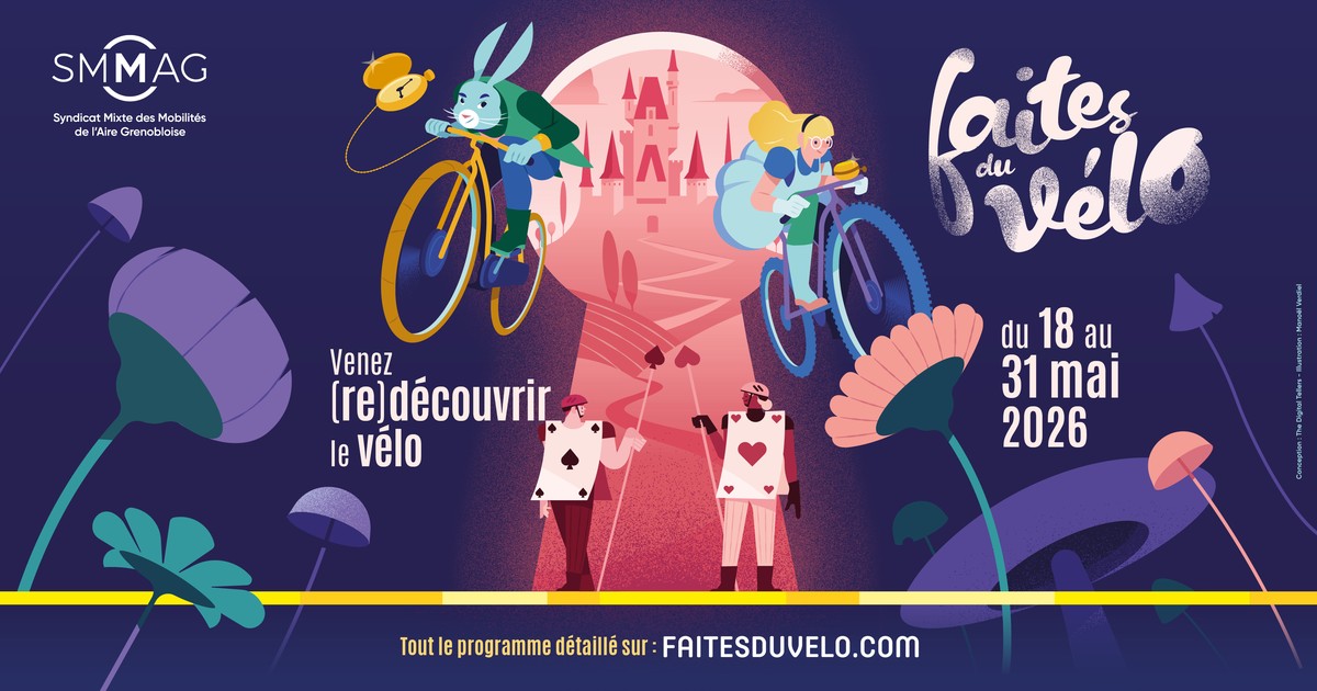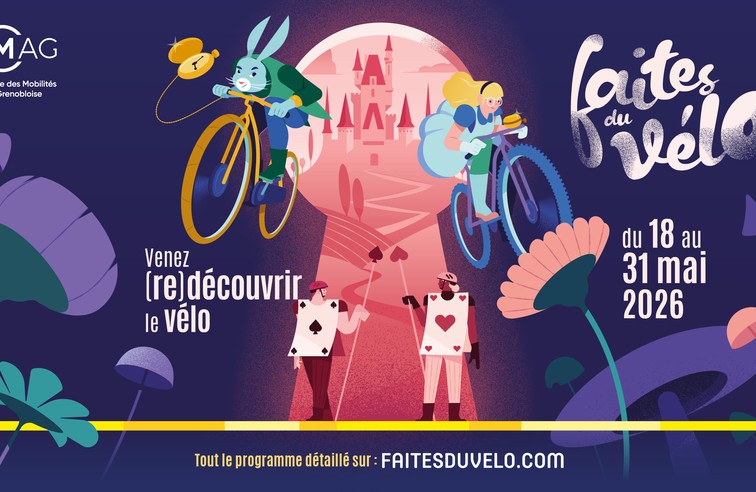 Pendant 15 jours, plongez dans le monde merveilleux d’Alice au Pays des Vélos et participez à nos activités gratuites en famille ou entre amis, dans la Métropole, le Grésivaudan et le Pays Voironnais.