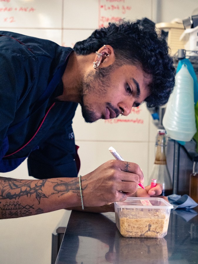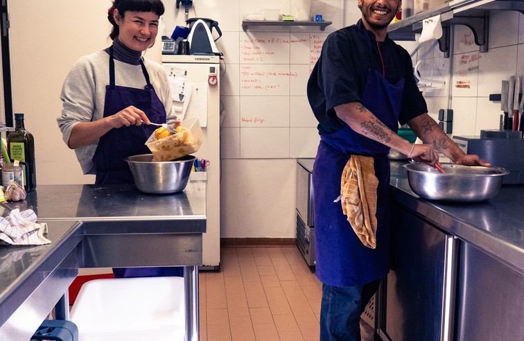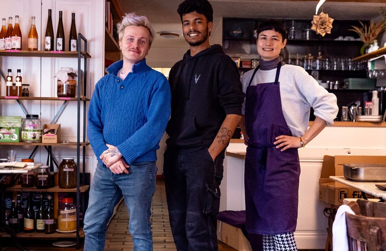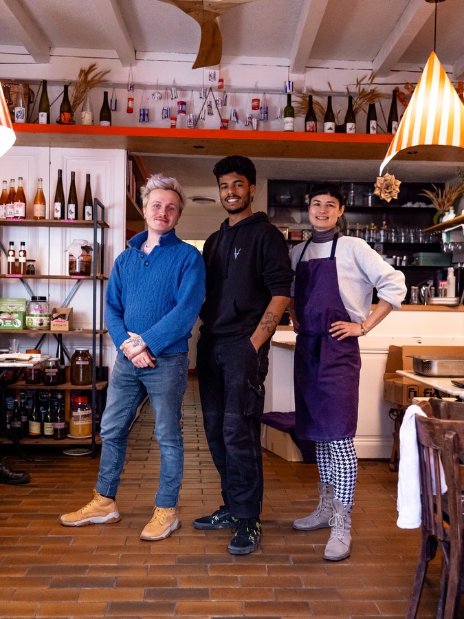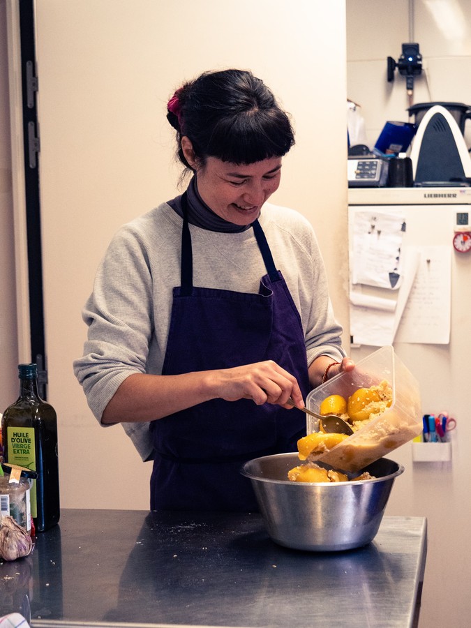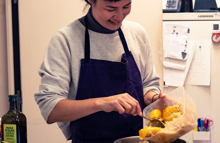 Jennifer Kendzior — fondatrice de Végétal Vivant, anthropologue de formation reconvertie aux arts de la fermentation — produit des aliments fermentés d’inspiration asiatique : kimchi, tempeh, miso, vinaigrettes umami… Ce sont ces produits que Sami Rachad, cuisinier de Nemeton – Biolab Café, a intégrés à sa cuisine 100% végétale aux influences maghrébines et méditerranéennes. Quatre mains : l’une qui fermente, l’autre qui cuisine. Une même philosophie du vivant.